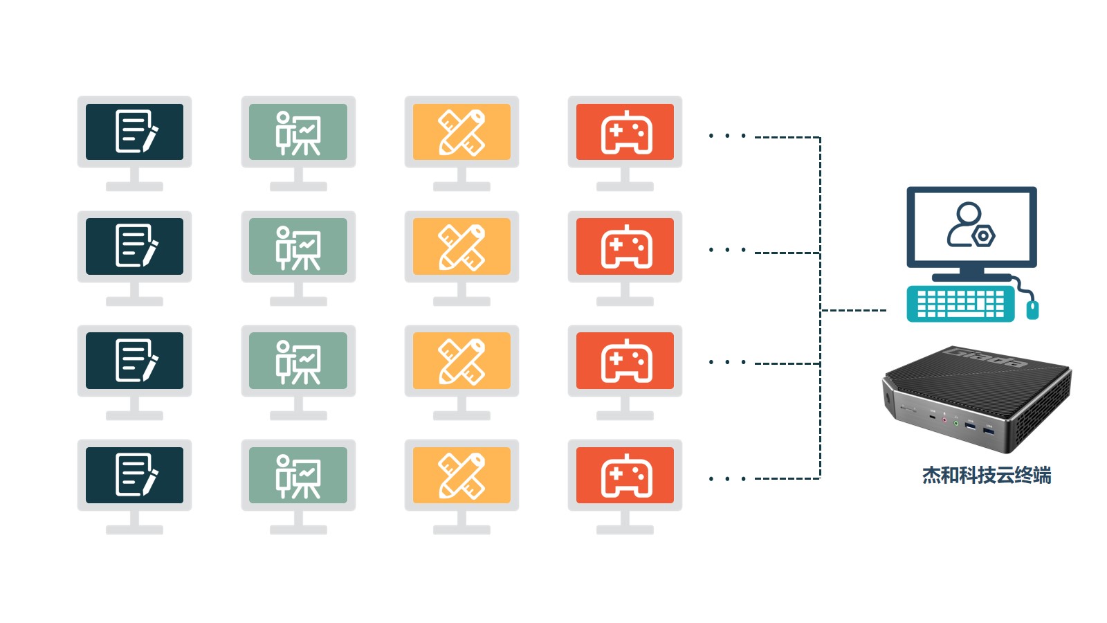 “云终端”通过利用云计算技术,实现了成本效益、易于管理和维护、高度可扩展等优势,这些特点使得它与传统PC区分出来,有了独立的市场需求,在企业办公或者教育行业这两大领域,云终端可实现快速部署,当企业规模、学生数量扩大时,云终端可以轻松扩展用户和设备,并且与传统PC相比,云终端通常消耗更少的电力,有助于企业实现绿色环保目标。