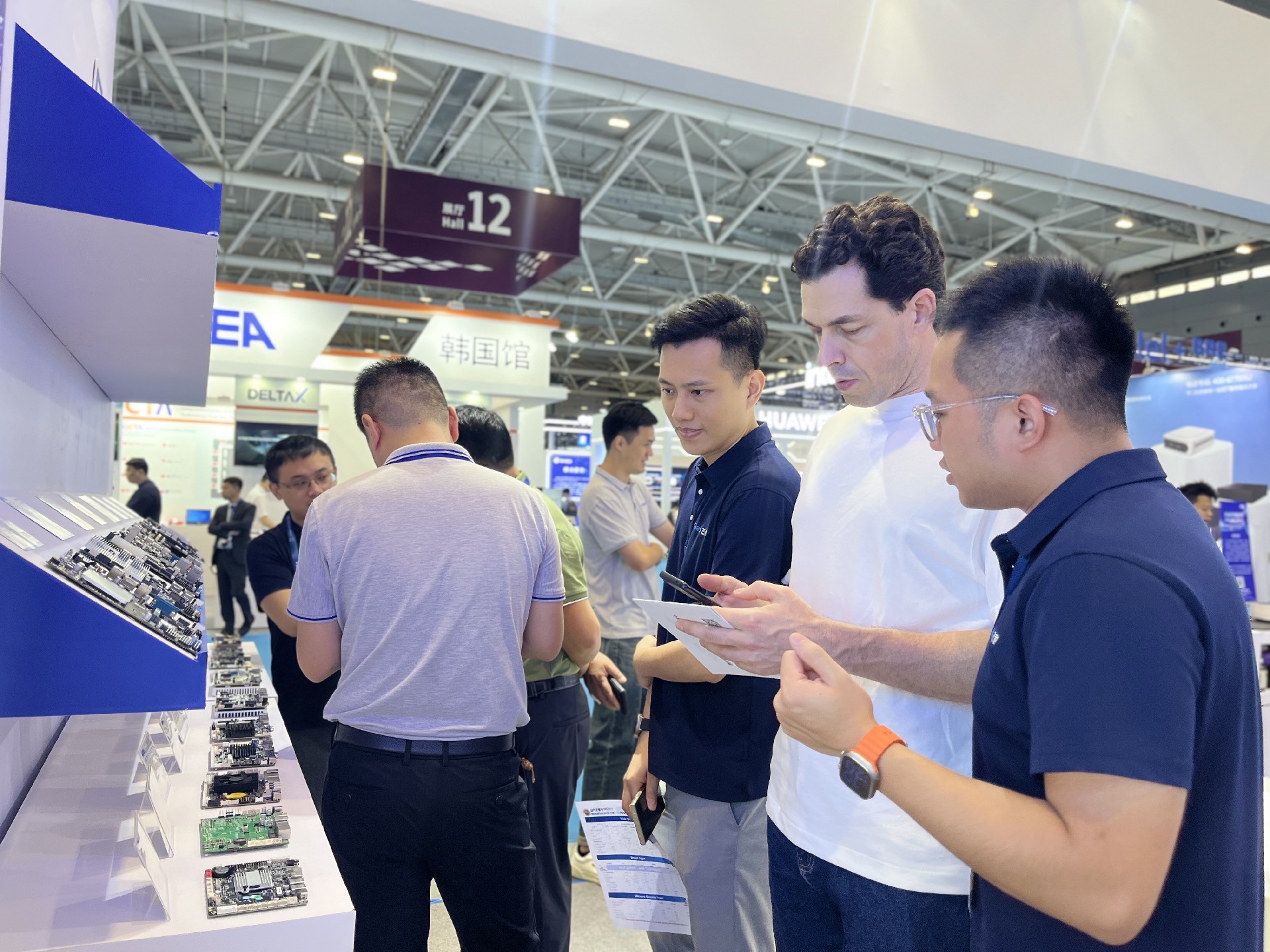 此次太阳成集团(tyc4633·中国)科技带来了30余款智能硬件产品,应用领域涵盖工业制造、办公、校园、户外商显等场景。并首次对外展示工作站WA814,以及CB4-X12-V0、CB4-812-V1等商用一体机主板,还有工业计算机整机、工业计算机主板等产品方案,凭借强大的产品性能和广泛的应用领域吸引大批观众驻足,展位现场人流涌动,热度爆棚!