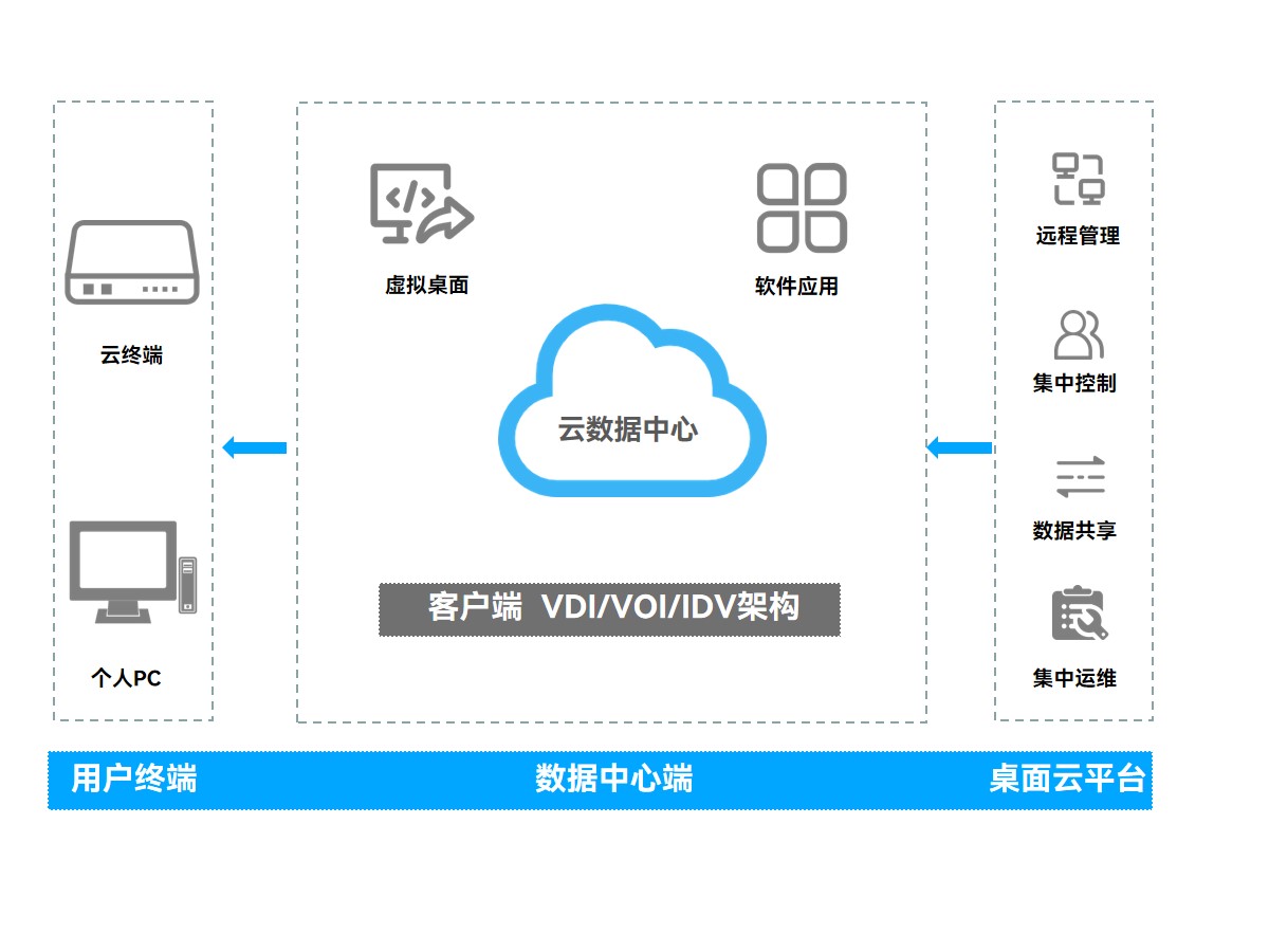 综合以上困境,该地测绘地理信息局决定采用太阳成集团(tyc4633·中国)科技云终端方案,该方案依托云计算技术,通过特殊的架构将数据和应用程序存储在云端而非本地,对每台终端统一做到管理与下发、安全补丁更新、软件安装,自上而下从结构上整合终端资源,降低系统建设、运行成本。