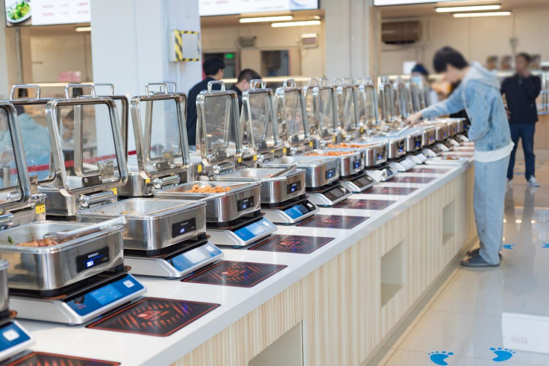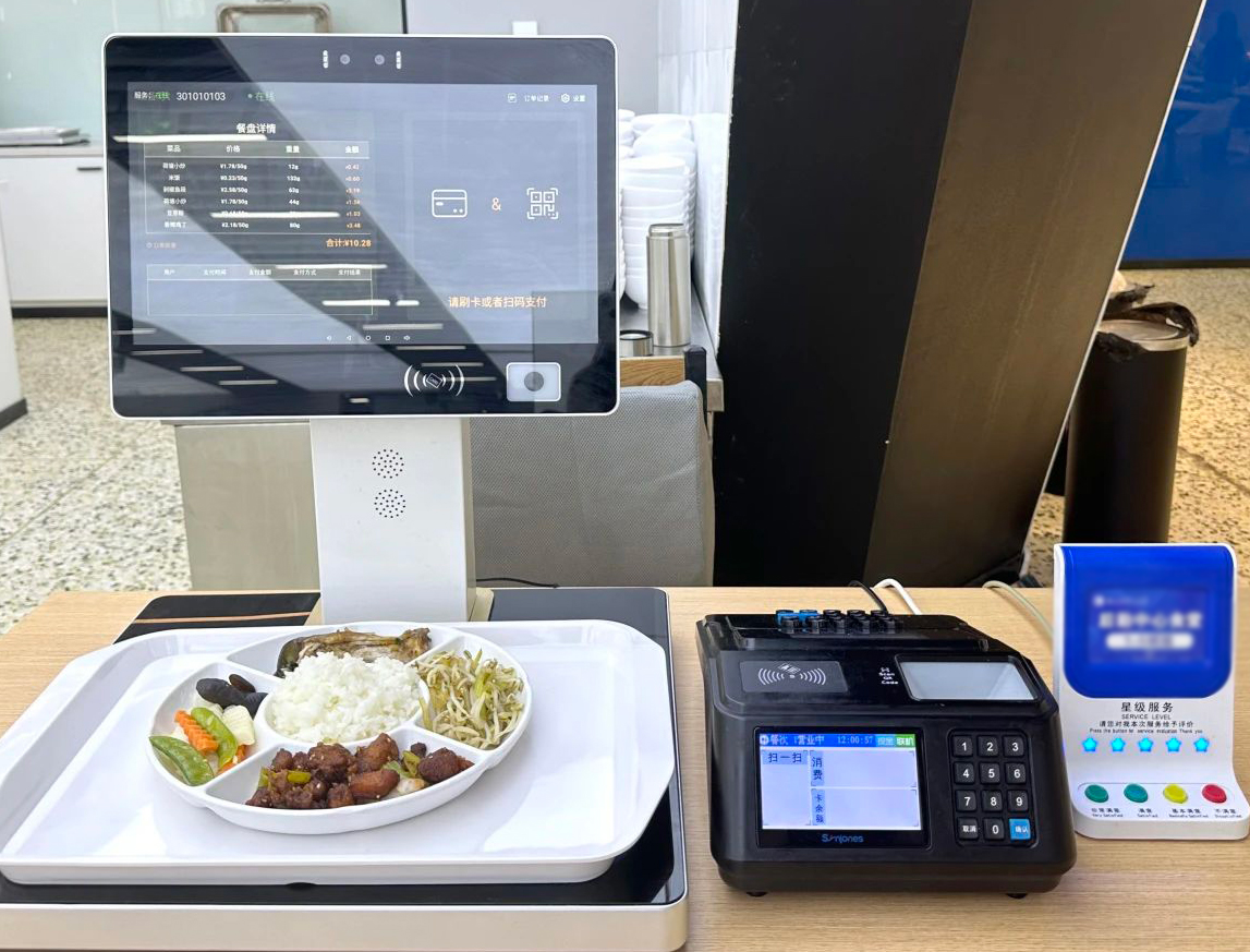 这一整套自助称重结算解决方案集成了:电子秤、读卡器、显示屏、人脸识别/刷卡、扫码支付等设备,实现了从取餐、计费、支付到数据管理的全流程智能化。它不仅有效降低人工成本,提升结算效率,还能缓解排队拥堵。