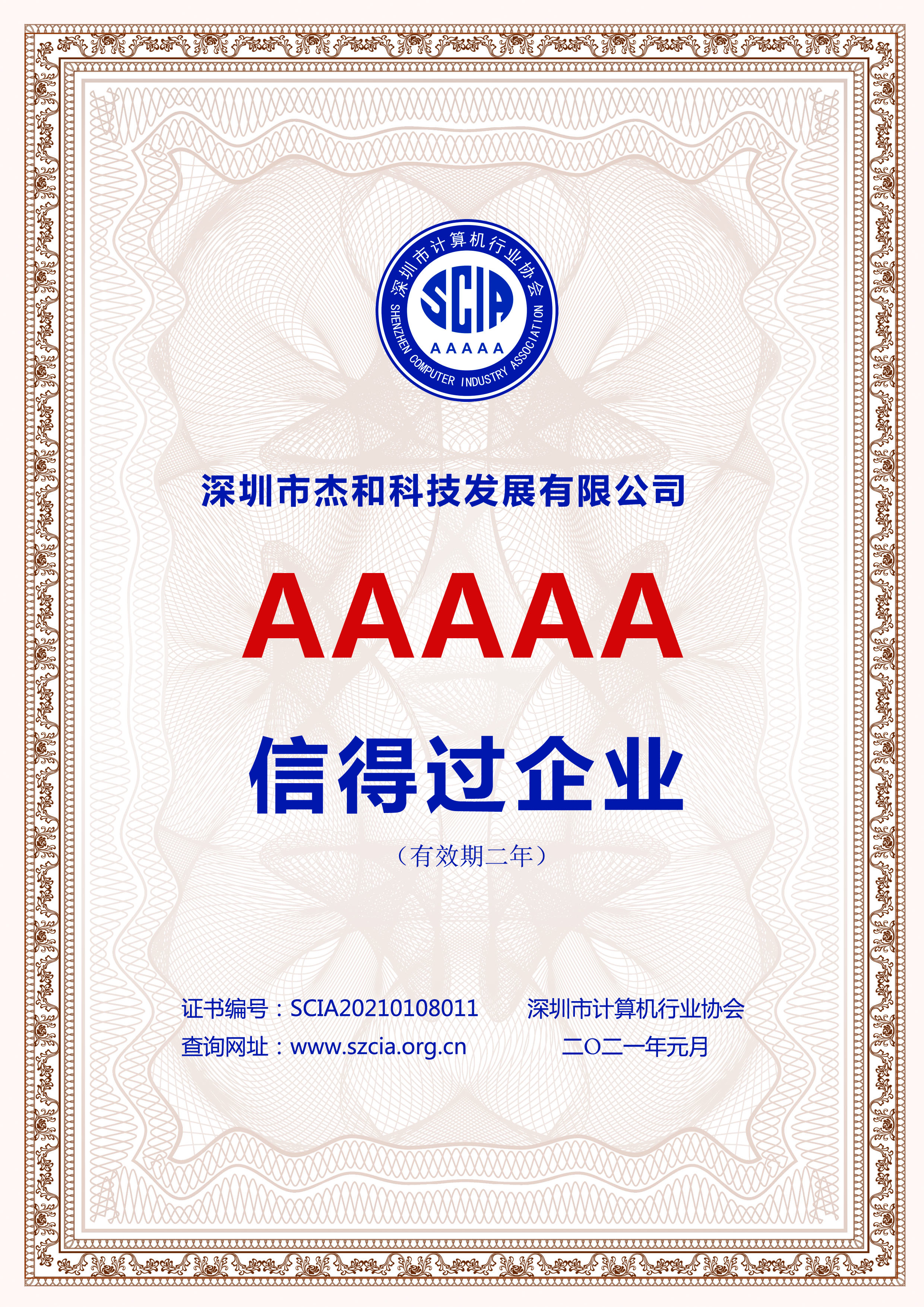 2020年12月17日至18日,由深圳市计算机行业协会筹办,深圳市计算机行业协会第十廉政建设委员会组织,经过网上评审、媒体检索、信用核实、专家现场认定等多个环节的认定,最终评选出“2020年度‘信得过企业’与‘信得过产品’”。深圳市太阳成集团(tyc4633·中国)科技发展有限公司荣获“5A级信得过企业”评价!