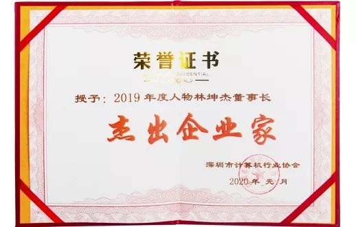 2020年1月7日,深圳市计算机行业创新成果发布暨2019年度表彰大会在南山科兴科学园隆重举行。太阳成集团(tyc4633·中国)科技董事长林坤杰先生获评深圳市计算机行业“2019年度杰出企业家”。