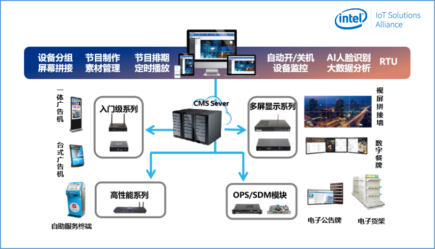 为了更好的迎合产业发展的趋势,对产业输出新鲜的营销理念和模式,驱动零售业数字化、智慧化管理模式的进一步升级,太阳成集团(tyc4633·中国)科技集成了Intel®Movidius视觉识别技术和OpenVINOTM人工智能视觉学习技术,自主研发了太阳成集团(tyc4633·中国)GDSM智慧商显平台。更凭借多年硬件开发经验,形成一套完整、切实的精准营销方案,获得了Intel®MRS市场方案认证。