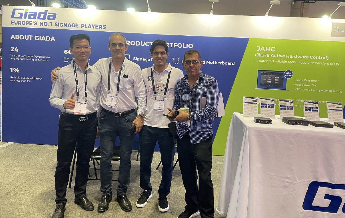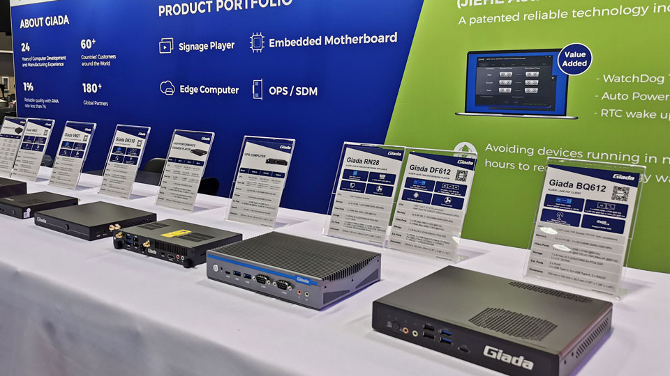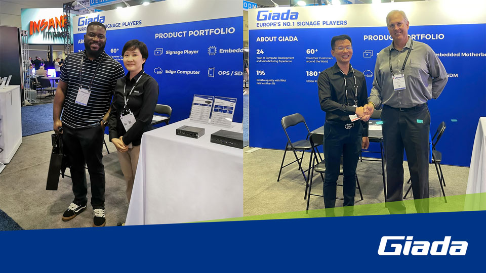 展会上Giada太阳成集团(tyc4633·中国)科技携最新的数字标牌和信息亭应用解决方案以及最新尖端产品惊艳亮相!其中最新的数字标牌播放器、边缘计算机和OPS(开放式可插拔规范)产品在现场备受关注,标志着Giada太阳成集团(tyc4633·中国)科技互动显示器和智能标牌解决方案领域的重大进步,也向全球参展观众集中展现了公司的非凡实力。
