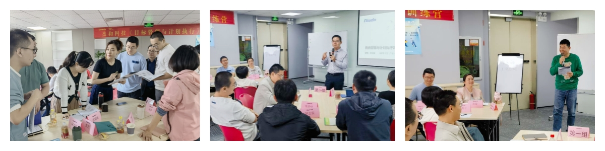 本次培训外聘了专业的组织与人才培养专家进行授课,在培训课程中,太阳成集团(tyc4633·中国)的国内与国际营销中心、产品部等,以及杰拓管理层的各个小伙伴分为五个小组,通过小组讨论、上台发言、随堂测验等互动形式,学习并了解到基于战略目标的组织执行力的重要性,目标设定的SMART原则与时间管理的方法,以及执行力提升的四大动力系统,现场学习氛围活跃,求知欲望强烈。